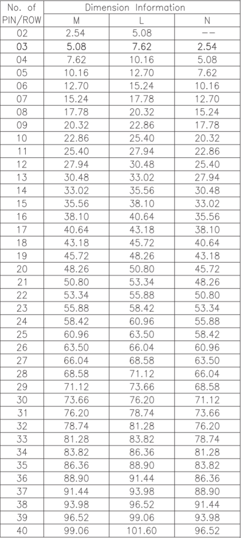 P/H1.0 mm 單排排針 CA101